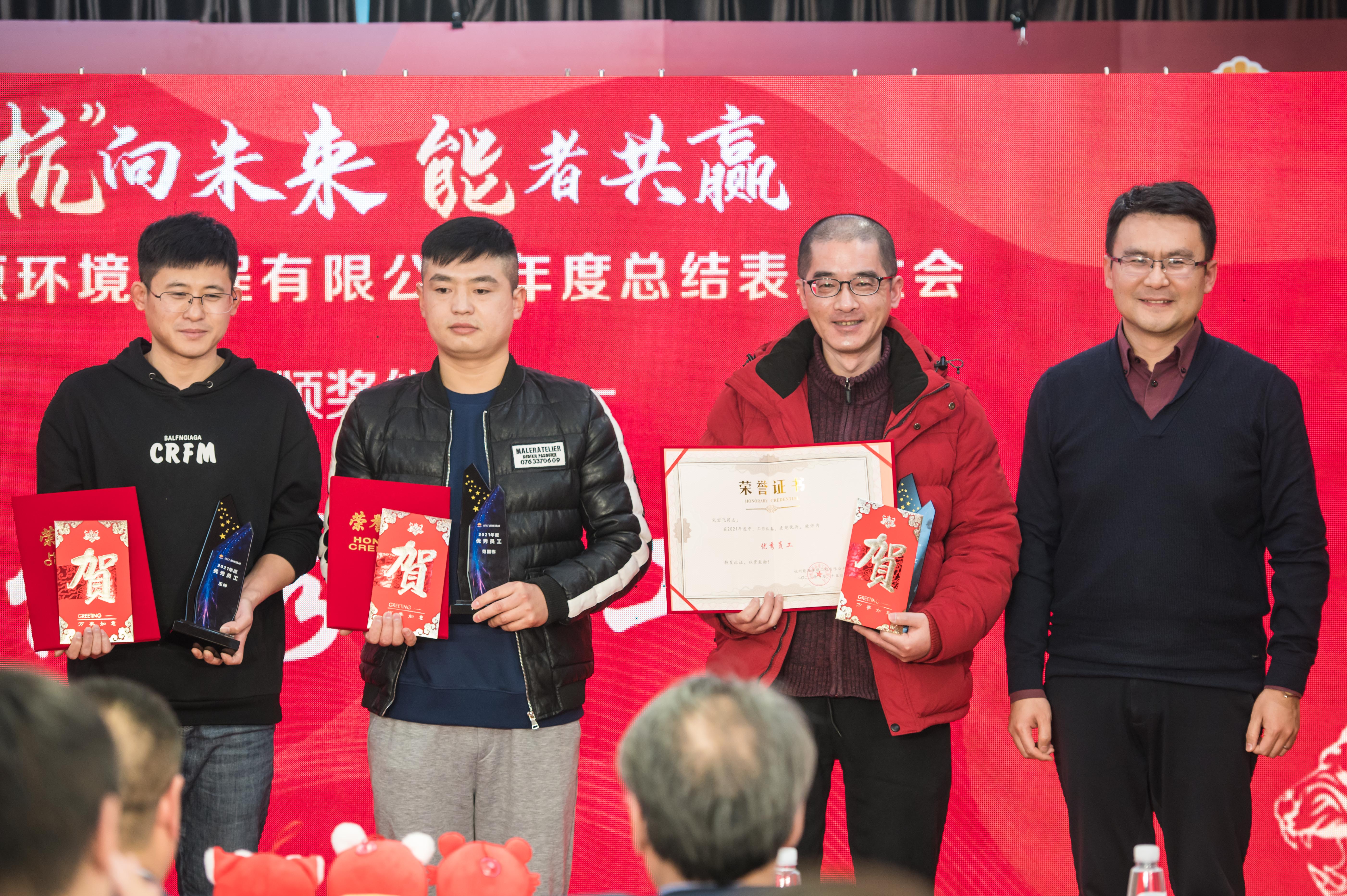 The Taurus resigns the year, and the tiger is blessed with power. On January 25, 2022, the 2021 annual summary and commendation meeting of HEEE was successfully held in the company headquarters. Li Yuezhong, chairman of Welly Environmental Protection Group, Zong Tao, president, and Zhang Jianquan, assistant to the chairman, came to the site of the annual meeting. Hangneng Environment employees participated in the summary and commendation meeting online and offline.