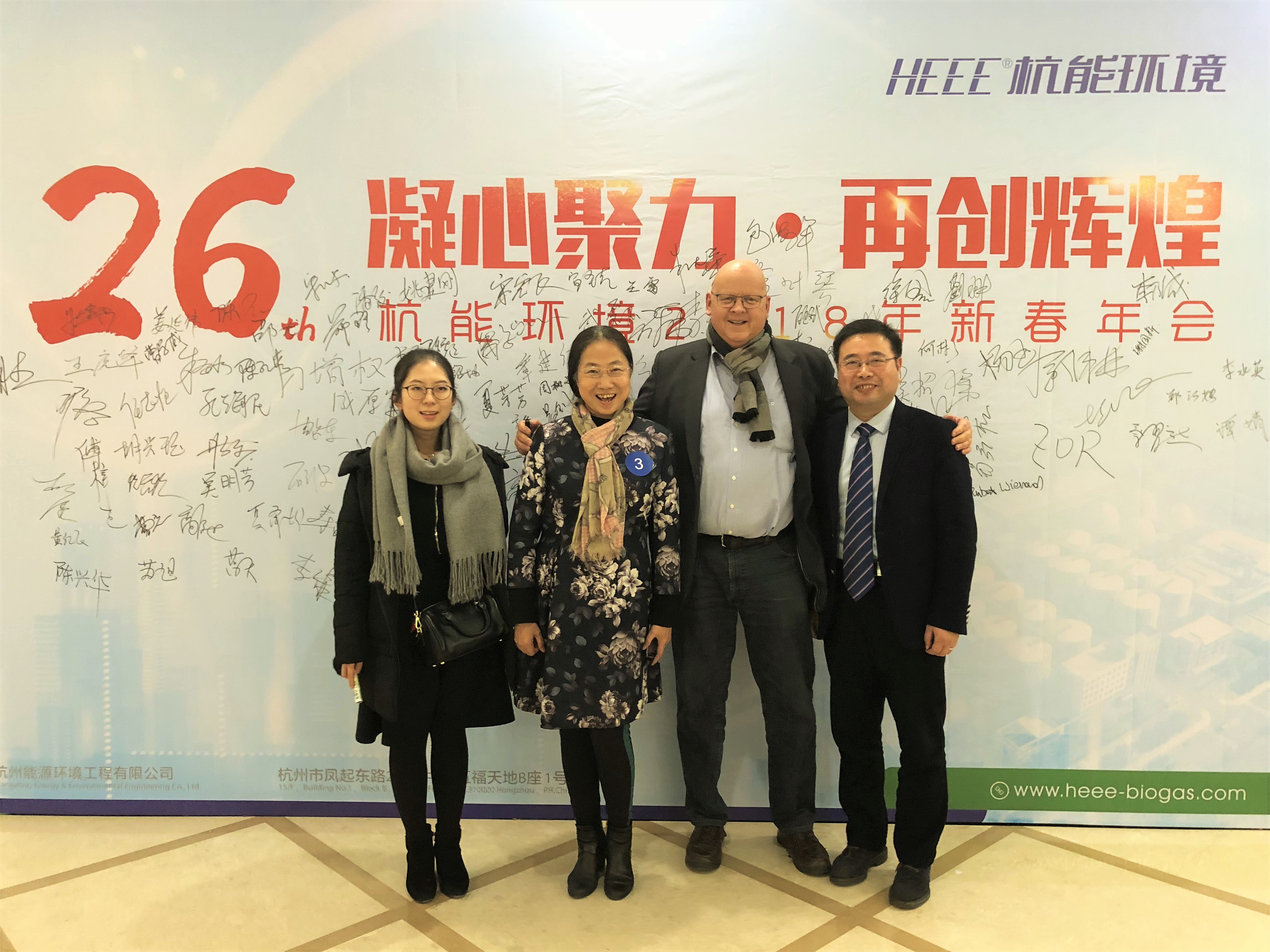 2018年2月6日,杭州能源環(huán)境工程有限公司2018年新春宴會在杭州新州賓館隆重舉行,參加宴會的除了杭能環(huán)境大家庭的成員外,公司還特意邀請到歐洲維爾利總經(jīng)理Hubert Wienands先生和項目工程師陳爽女士、杭能法律顧問李湘勝律師作為參會嘉賓,大家歡聚一堂,共同作別豐碩的2017,迎接充滿希望的2018??!