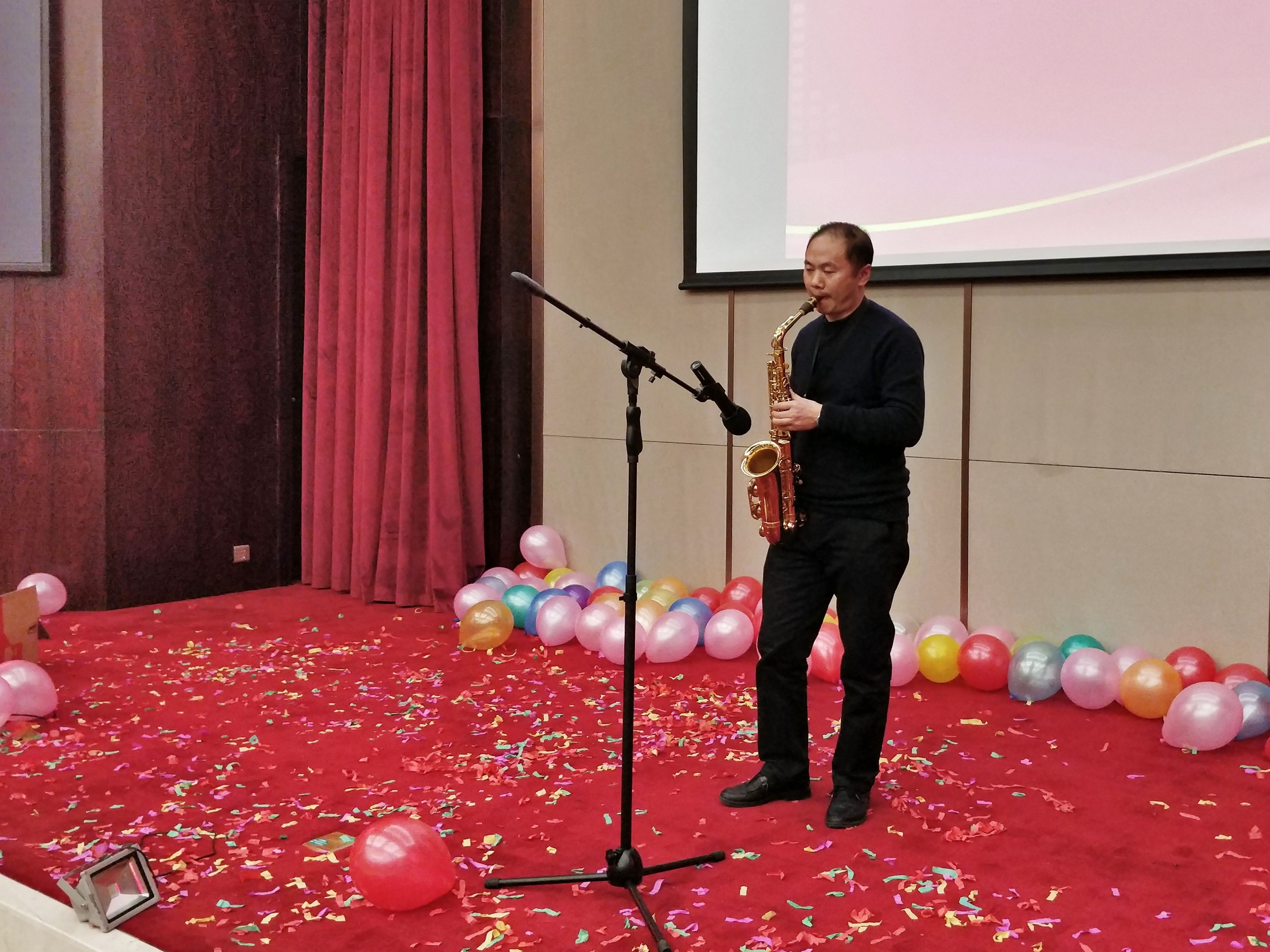 杭能環(huán)境法律顧問李湘勝律師受邀上臺表演薩克斯演奏《我只在乎你》+《北國之春》,將晚會氣氛推向高潮!