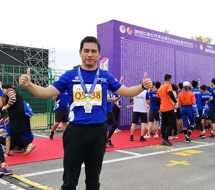 10月14日,由中國田徑協(xié)會、江蘇省體育局、常州市人民政府聯(lián)合主辦的2018常州西太湖半程馬拉松在常州花卉博覽園正式鳴槍開跑。來自18個國家兩萬多名跑者匯集,共同感受常馬的風(fēng)采。應(yīng)總公司江蘇維爾利之邀,杭能環(huán)境派出工程部吳劍、設(shè)計部田啟歡、重大部宣圣吉、袁玲莉、張佳薇組成奔跑團征戰(zhàn)常州,參加一年一度的常馬盛事。